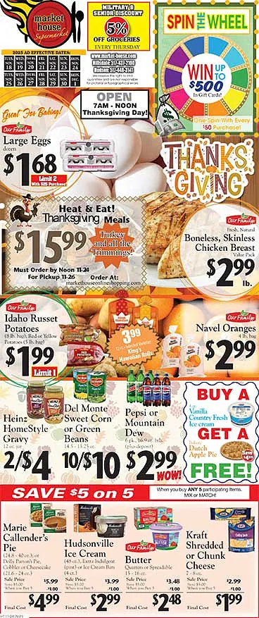 Market House has the best lunch meats and cheeses made in Michigan from Kretschmar! We offer our customers a Superfresh salad bar, Krispy Krunchy Chicken, Sharon's House of Pancakes and Blimpie subs. Your favorite meals are available at discounted prices for a limited time each day.